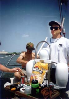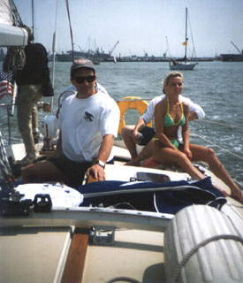 Enjoying the view aboard the "SEA RAVEN" during the Parade of Sail at Harborfest 1996 in Norfolk.
