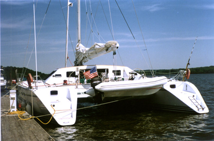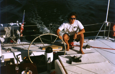 at the helm of The Millennium a 55' Lagoon Catamaran.